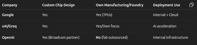 Fourth, competition is converging. Google isn’t just competing at the model level, it’s competing at the infrastructure level with its own chips. xAI is doing the same. Meta is involved. This isn’t just about better models anymore. It’s about vertical integration and control of the full stack.